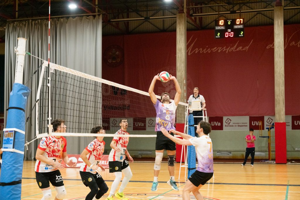 Y eso que el encuentro comenzó con la mala noticia de la ausencia de Sergio Santamaría. El opuesto y referencia ofensiva del juego universitario se lesionó en el entrenamiento del pasado jueves y, aunque estaba “preparado por si fuera realmente necesario”, vio todo el encuentro desde el banquillo. Una baja sensible que los vallisoletanos suplieron a base orgullo, inteligencia en momentos del encuentro y fases de gran recepción y defensa, especialmente del líbero Alejandro González.